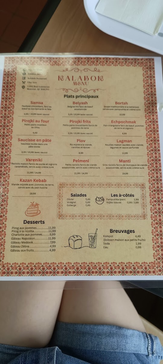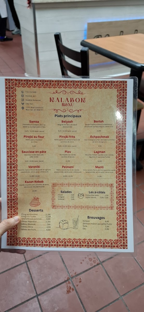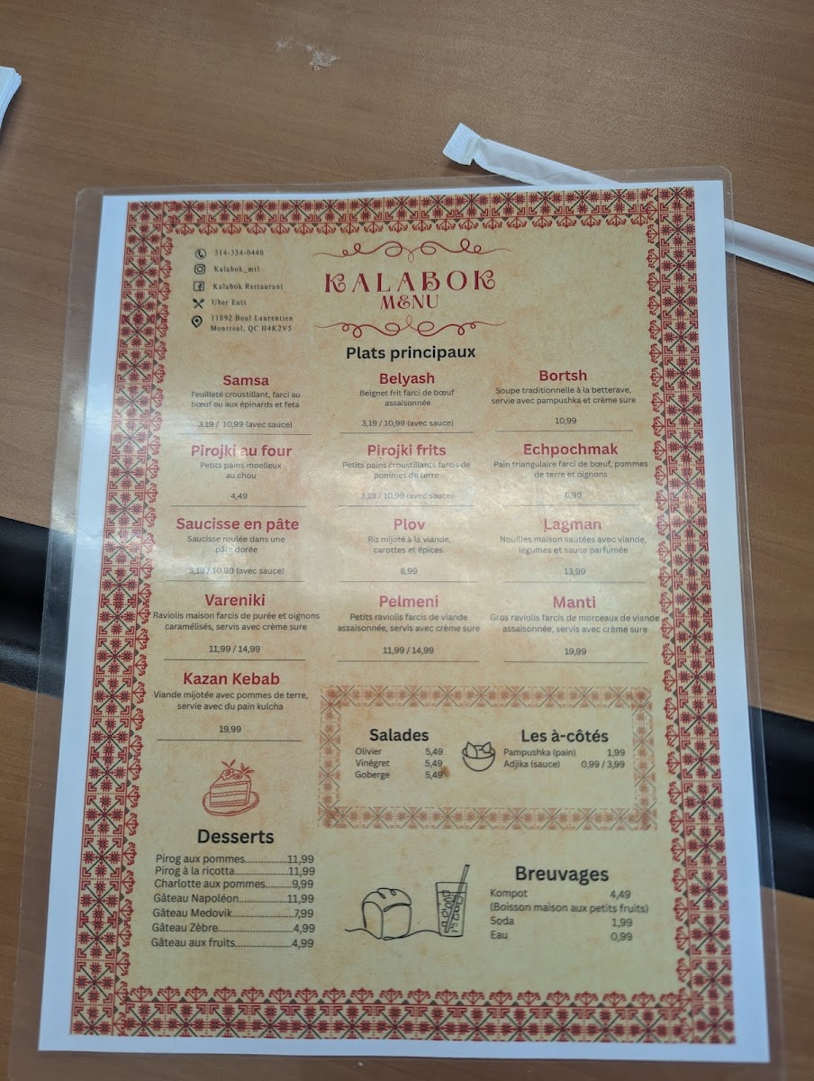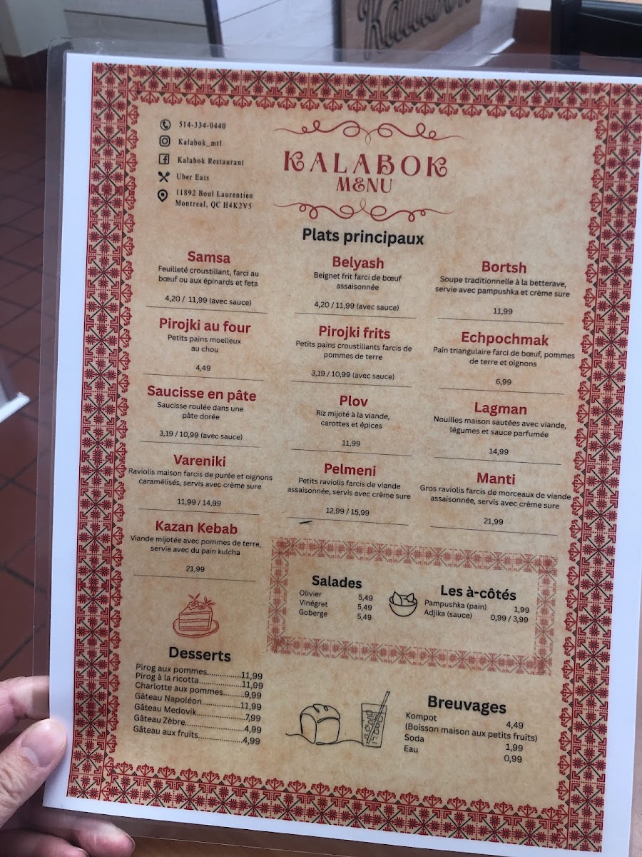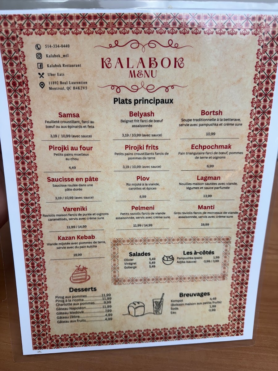Kalabok is a hidden gem nestled in Ahuntsic-Cartierville, Quebec, offering authentic Slavic and Central Asian flavors that feel like a warm, home-cooked meal. The menu highlights traditional dishes such as Samsa, an oven-baked puff pastry generously filled with spiced beef or spinach and feta, and crispy, golden Fried Pirojki, served with a mildly spicy Adjika sauce that beautifully complements each bite. The sides, like creamy crème sûre, add richness and balance.